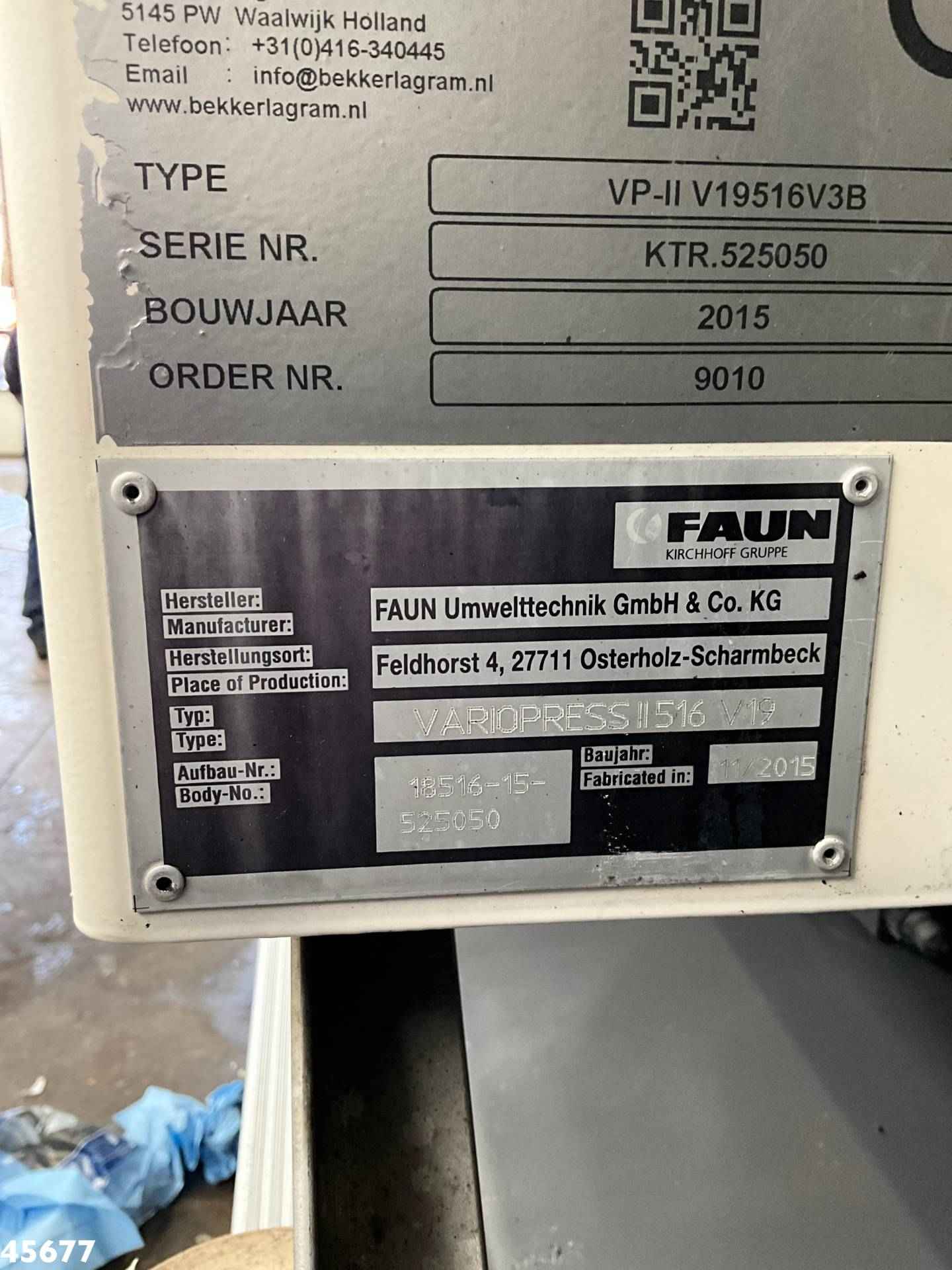 - Opbouw: Faun (type VarioPress II 516 V19), 19m³