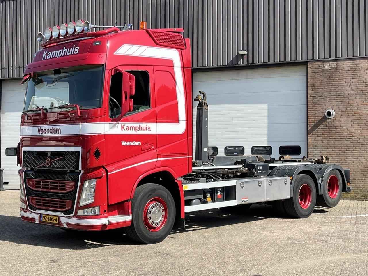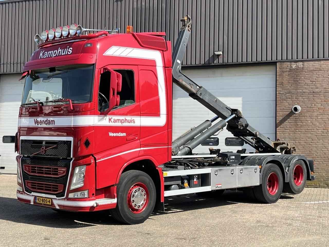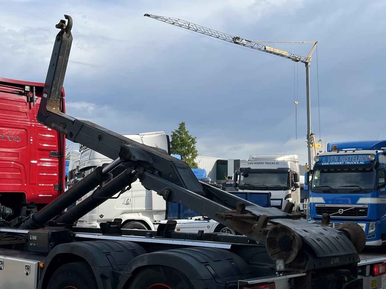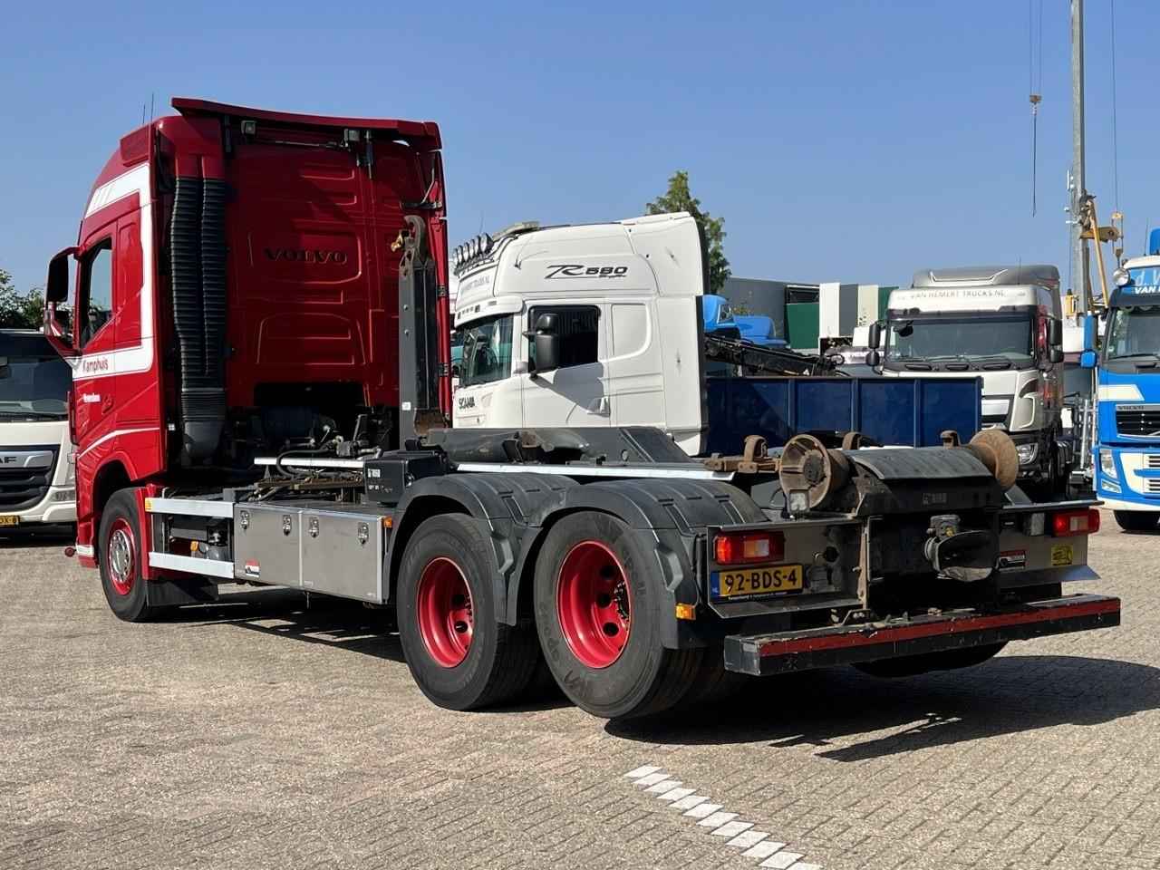Aandrijflijn PTO: 3053 uur Opbouw Bouwjaar: 2014 Materiaal: Staal Volvo FH500 Haakarm containersysteem Hiab Multilift haakarm 26 ton XR26S59 -M-IC2B 590 cm haakarm Motor PTO Klapbumper mechanisch Rolhoogte: 136cm Euro6 6x2 10.000kg vooras Wielbasis 490 cm Vangmuil 40mm I-Shift automaat Motor PTO Airco Climate control 2 x Kastenwand Koelkast Standkachel Verstelbaar stuurwiel met necktilt VEB+ New Smart Tacho GenV2 Achteruitrijcamera Zeer nette NL containerwagen Direct inzetbaar