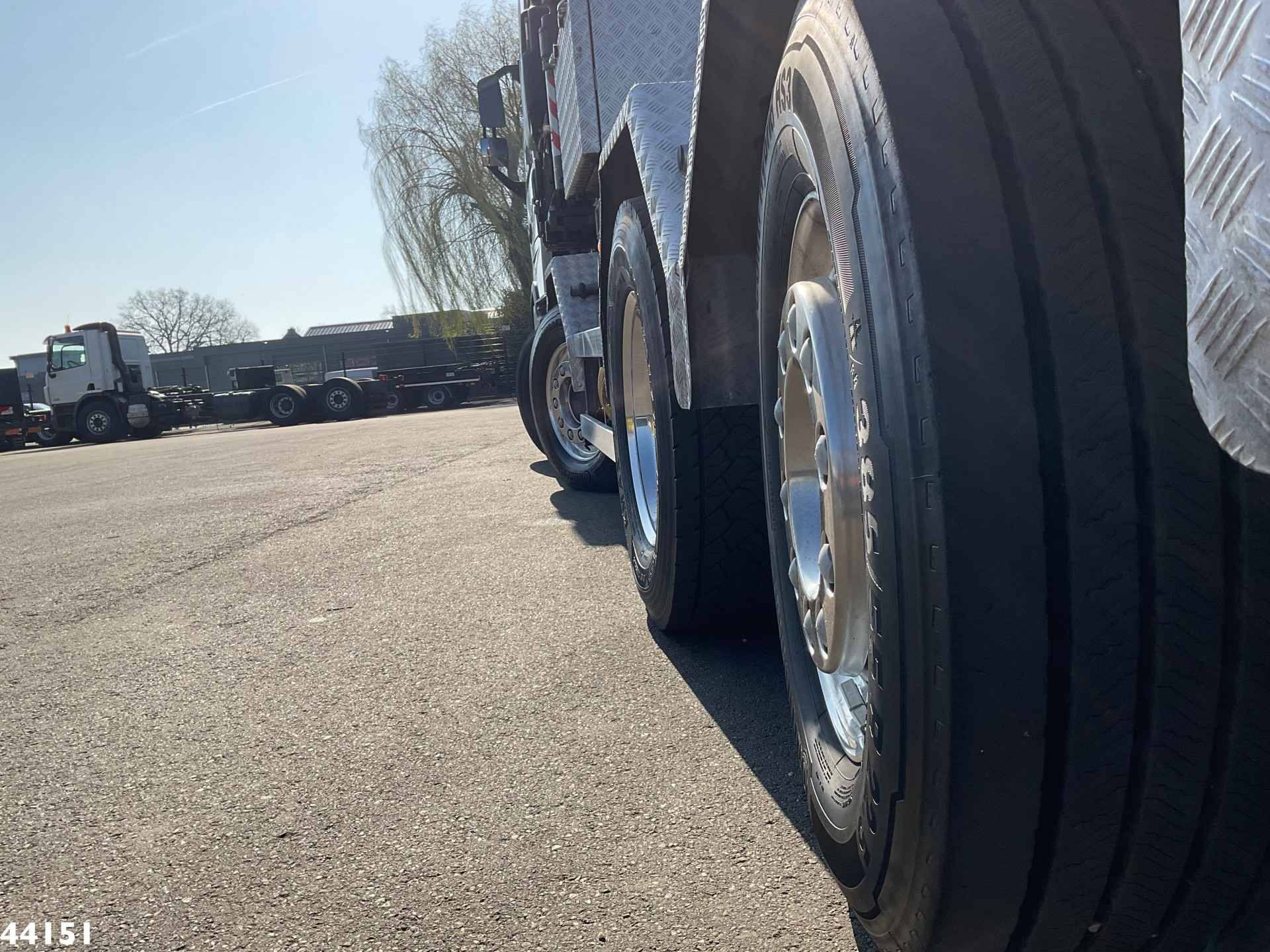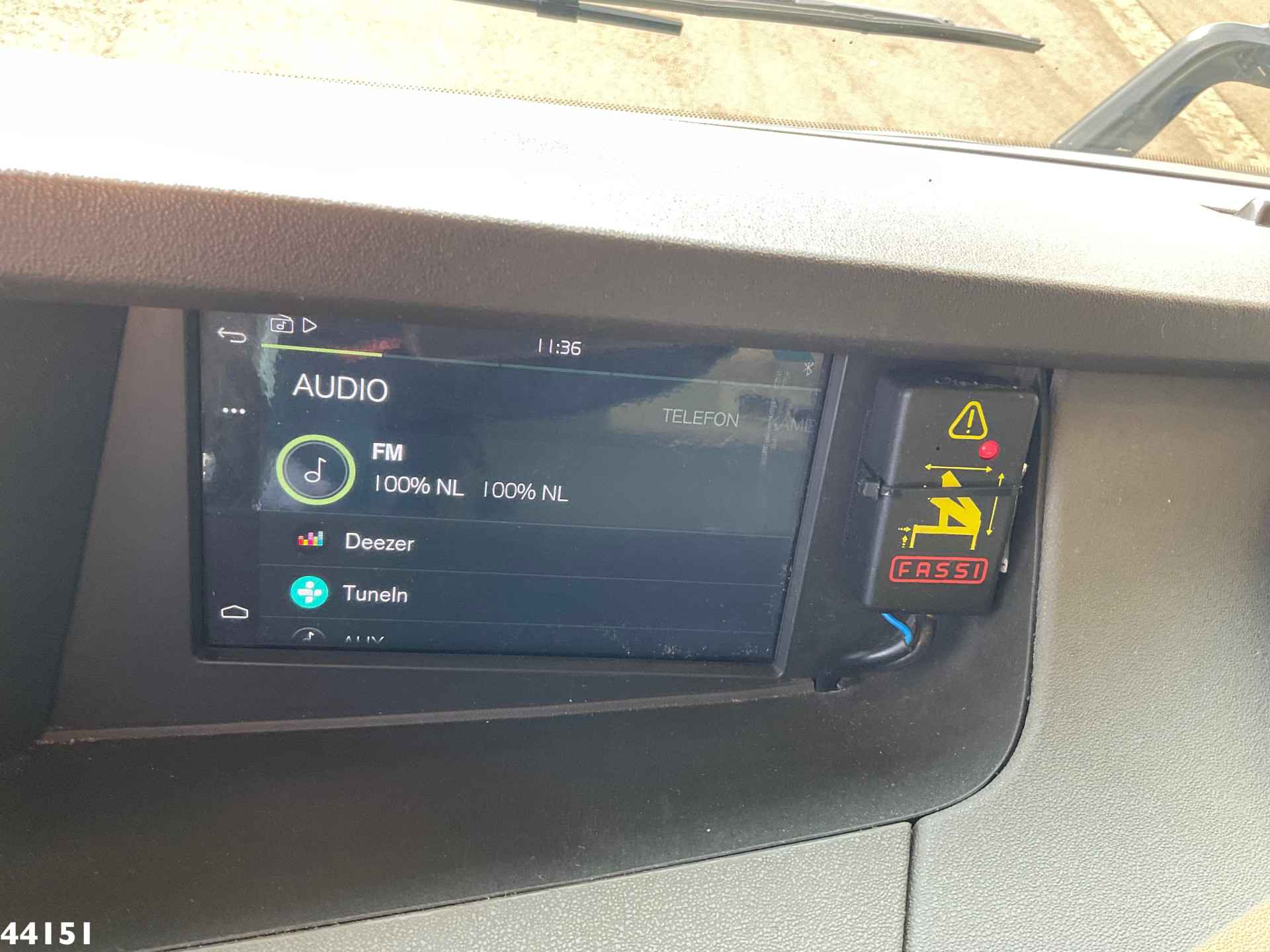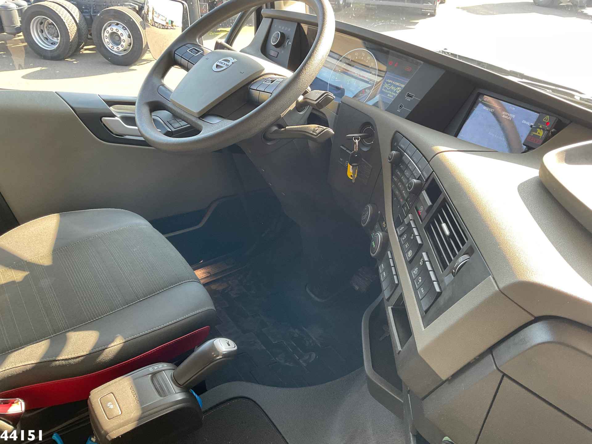 - Fassi 165 Tonmeter laadkraan (type F1650RA.2.28 XHE DYNAMIC) - 8 x hydraulisch uitschuifbaar - 5-e en 6-e functie - 7-e functie t.b.v. hydraulische lier - 5 x afgestempeld, inclusief front afstempeling - Oliekoeler - Radiografische afstandsbediening - Hijstabel: * 5.7 meter -> 21.110 kg * 7.45 meter -> 15.965 kg * 9.30 meter -> 12.525 kg * 11.30 meter -> 10.140 kg * 13.30 meter -> 8300 kg * 15.40 meter -> 6890 kg * 17.40 meter -> 5.945 g * 19.40 meter -> 5.245 kg - Fassi Fly-Jib (type L 816) - 6 x hydraulisch uitschuifbaar - Hijstabel Fly-Jib: * 23.65 meter -> 2.945 kg * 25.05 meter -> 2.740 kg * 26.40 meter -> 2.425 kg * 28.00 meter -> 1.910 kg * 29.60 meter -> 1.565 kg * 31.30 meter -> 1.320 kg - Hydraulische lier Brevini (type BWF 6000), 5300 kg - Inclusief meerdere cartollen - Demontabele laadbak, afmetingen (inwendig) lengte 370 x breedte 247 cm x hoogte 60 cm - Laadvloerhoogte 117 cm - Uitklapbare aluminium zijborden - Vangmuil 50mm - Jost demontabele schotel - Schotelhoogte 136 cm - Dura Bright lichtmetalen velgen - Brandstoftank 275 liter - Adblue tank 57 Liter - Omgevingstemperatuur -25 C / +40 C - VEB+ (Volvo Engine Brake) - GCW 70 Ton (technisch) - 9 Ton voorassen - 13 Ton achteras - 1 bed - Slechts 104.869 Km! - In zeer nette staat!