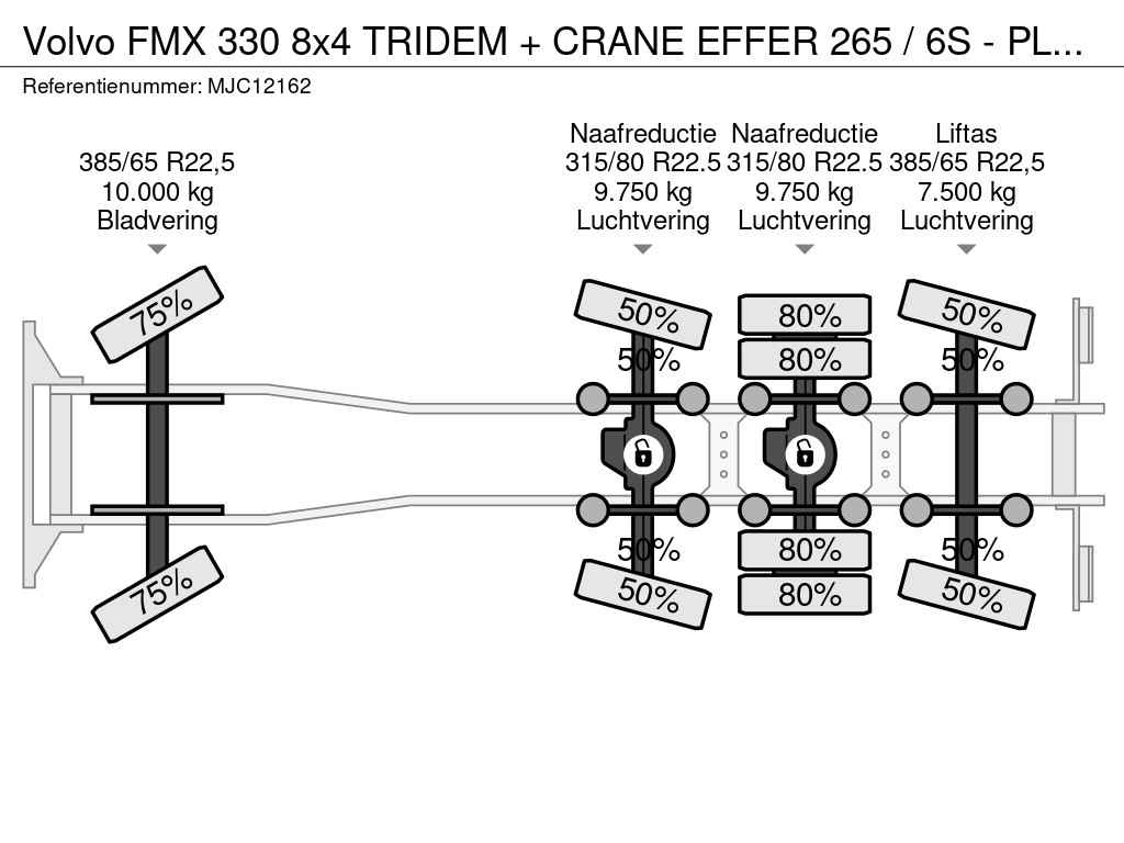 330 8x4 TRIDEM + CRANE EFFER 265 / 6S - PLATFORM 7m50 - EURO 6 - RADIO - *473.000km* - TÜV 05/2026 - BE TRUCK