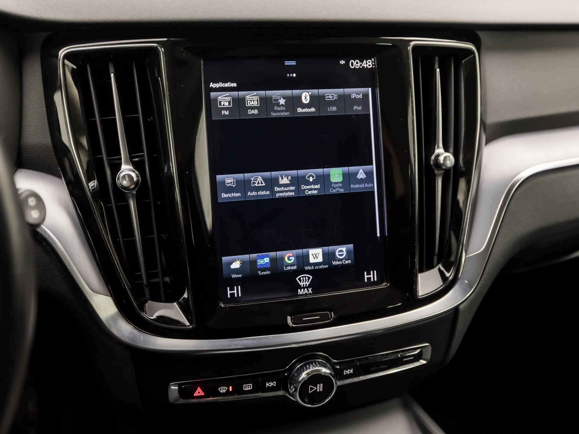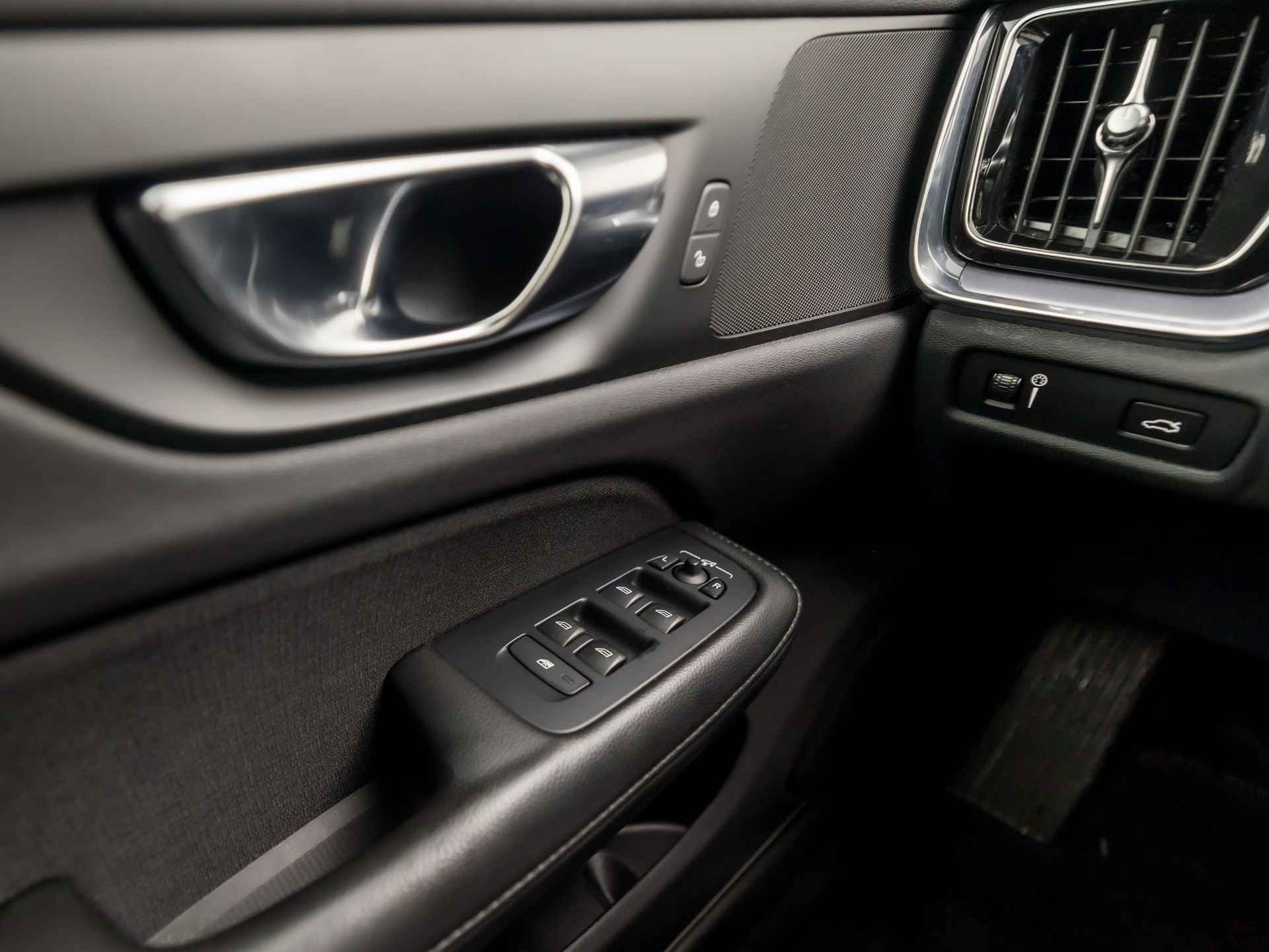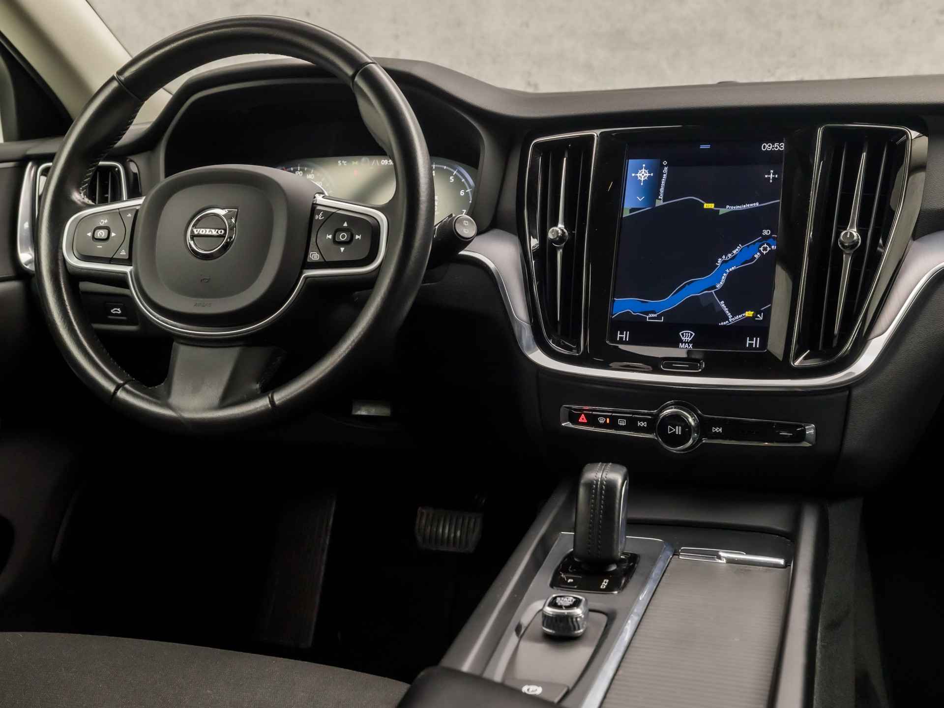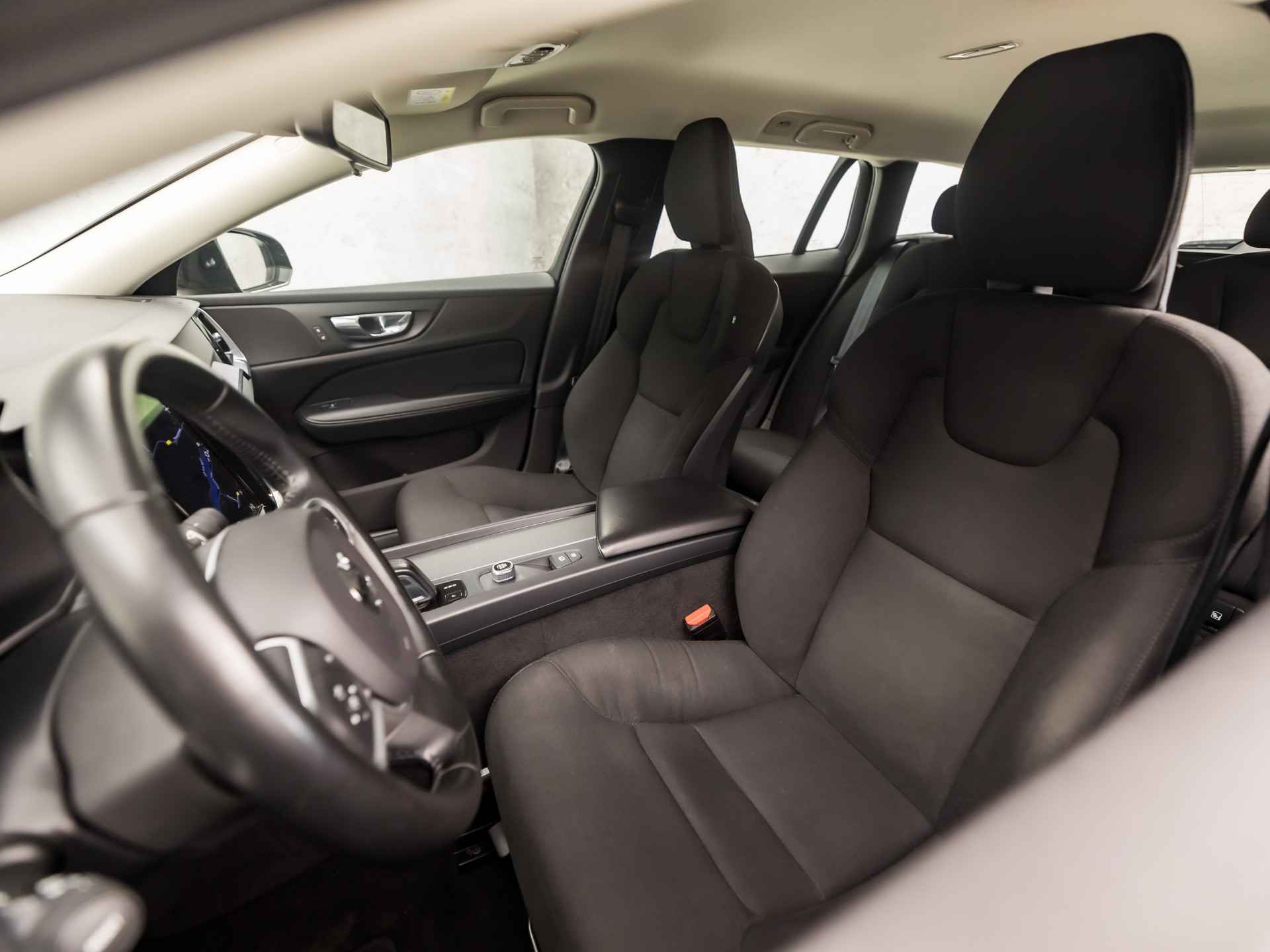 Zoals u mag verwachten van deze Volvo V60 is hij uitgerust met een reeks aan actieve veiligheidssystemen. In het instrumentarium kunt u bovendien de verkeersborden zien die u onderweg tegenkomt. Zo helpt deze Volvo u om veiliger te rijden. Het Lane-keeping systeem zorgt voor een automatisch constante positie binnen de rijstrook. Afdwalen is uitgesloten. Onbedoeld bumperkleven is er niet bij, dankzij de forward collision warning. Die waarschuwt direct als een botsrisico met uw voorligger dreigt. Met voorzieningen als hill hold functie, Abs - anti blokkeer systeem met brake assistant, vermoeidheidsherkenning en bandenspanningcontrolesysteem, bent u altijd veilig onderweg.
