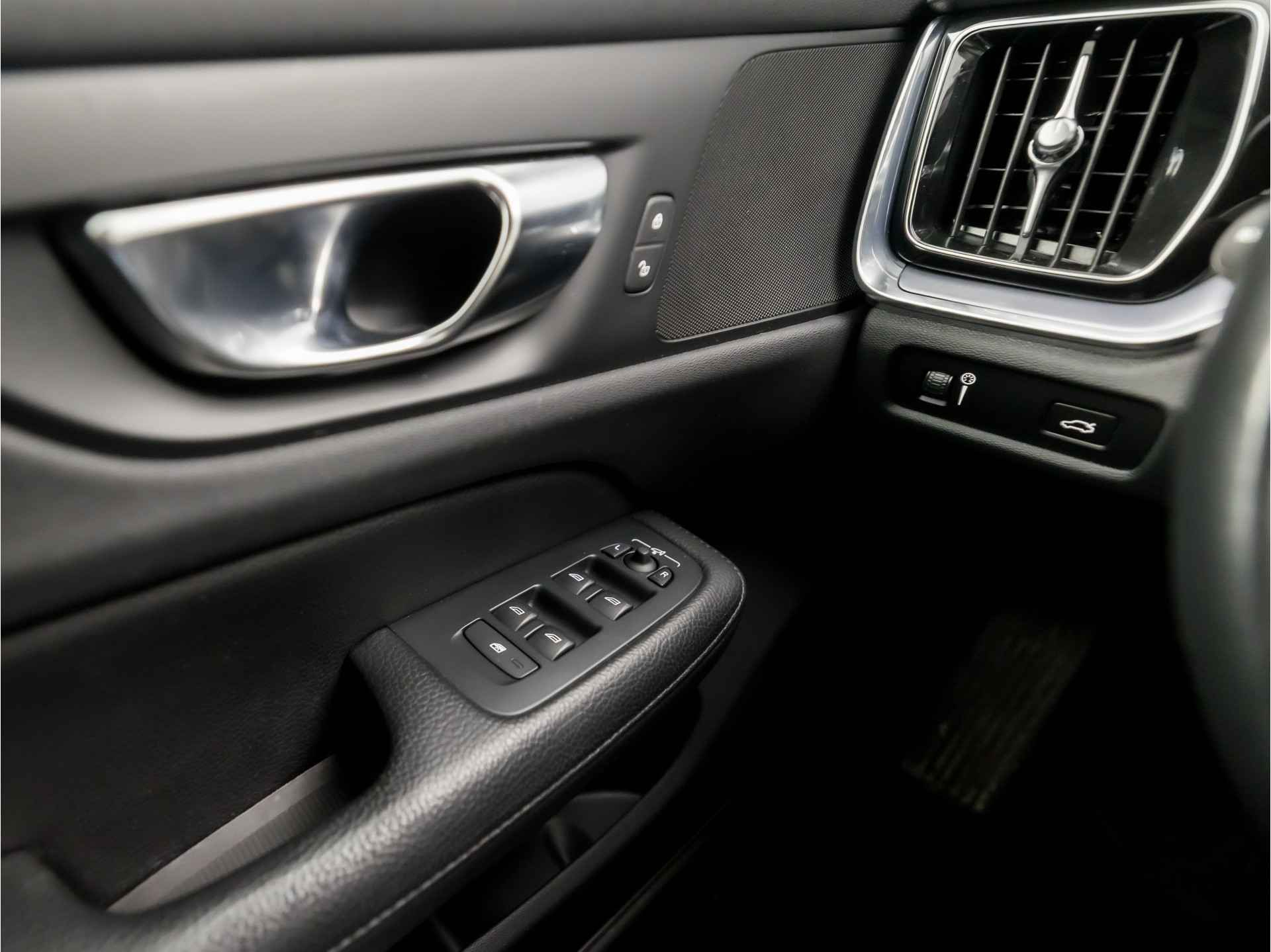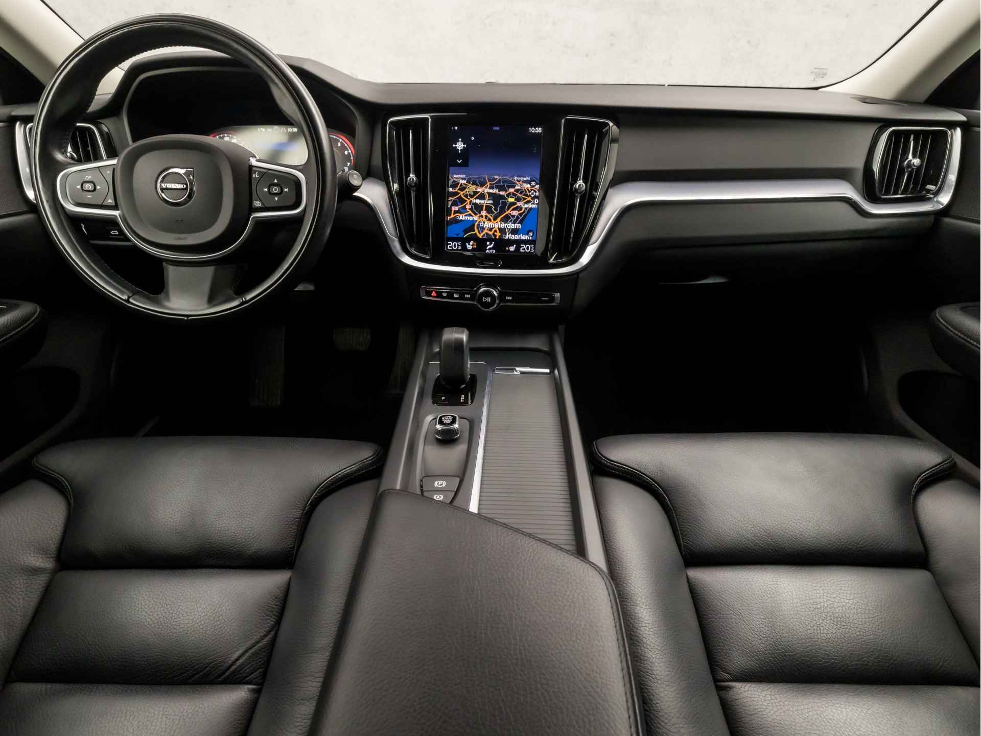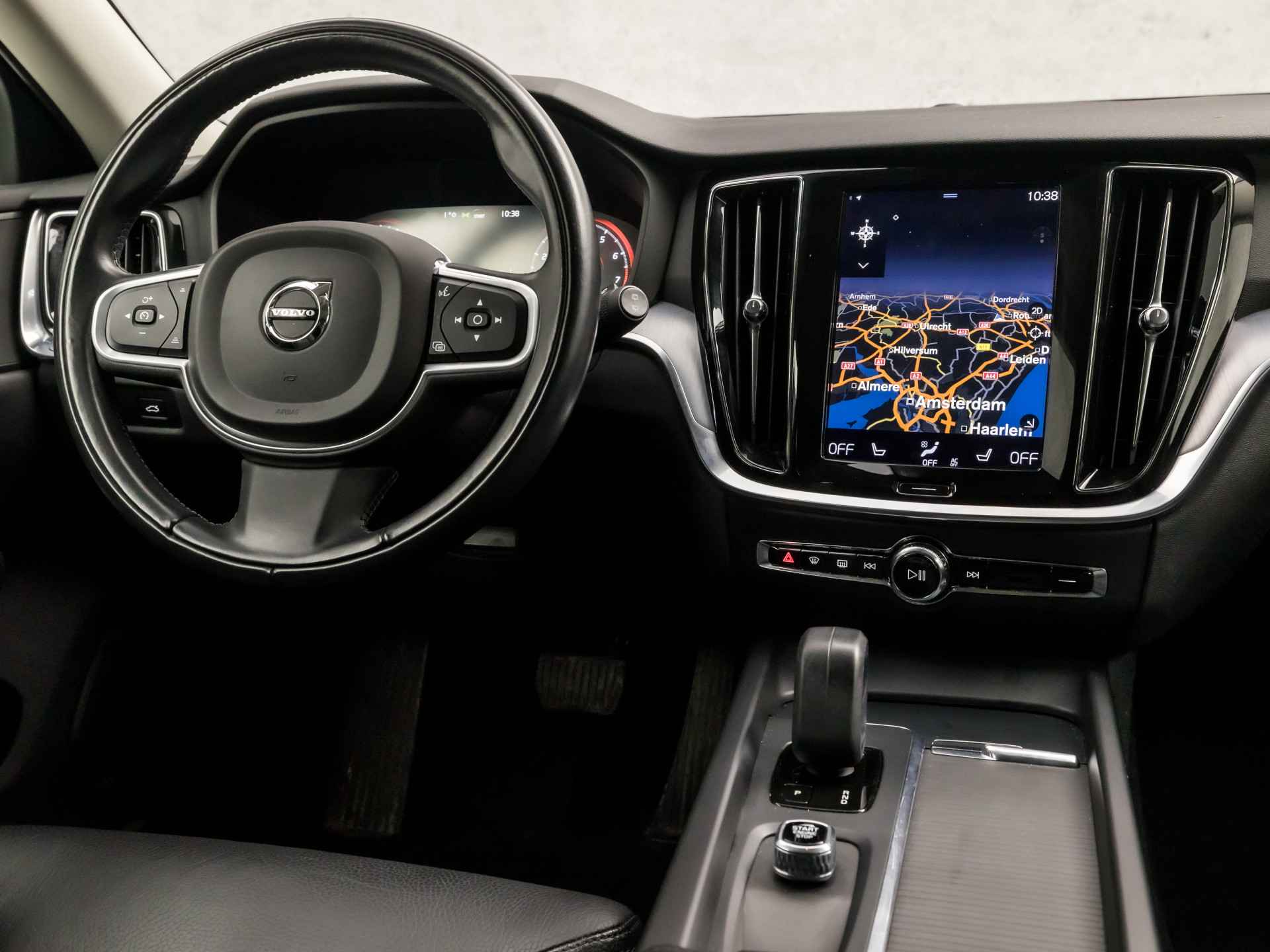 De indeling van het digitale dashboard is zo ingericht dat u met één blik precies weet wat u weten wilt. Achteruitrijden en inparkeren worden een eitje dankzij de achteruitrijcamera. Adaptive cruise control is veilig en comfortabel. De snelheidsregelaar houdt automatisch afstand tot het voertuig dat voor u rijdt. Deze Volvo V60 is 'connected'. Belangrijke functies worden permanent gemeten en zijn uit te lezen via een speciale app, ook op afstand. Uw veiligheid op de weg wordt verhoogd door het audio-installatiesysteem met DAB-ontvangst en het navigatiesysteem met harde schijf te bedienen vanaf het stuur of met spraakbediening, zodat uw handen veilig op het stuur blijven en uw ogen gericht zijn op de weg. Ook WIFI-hotspot, achteropkomend verkeer waarschuwing, kruisend verkeer detectie, automatische airconditioning, regensensor en keyless entry zijn aan boord.
