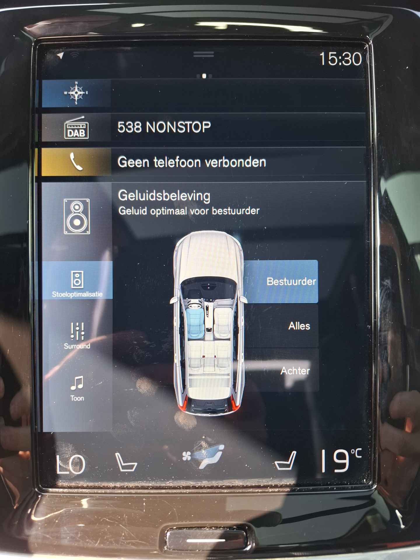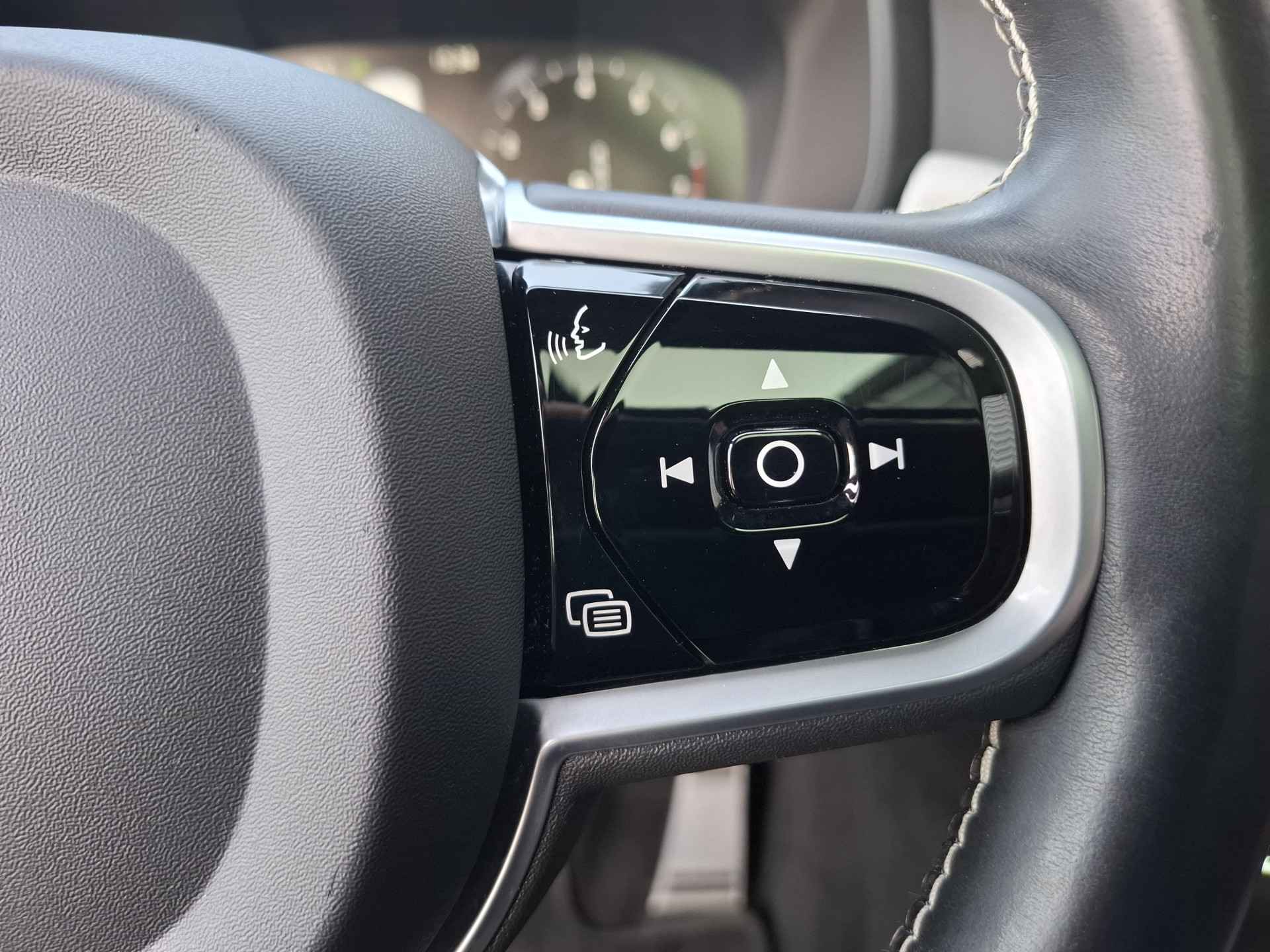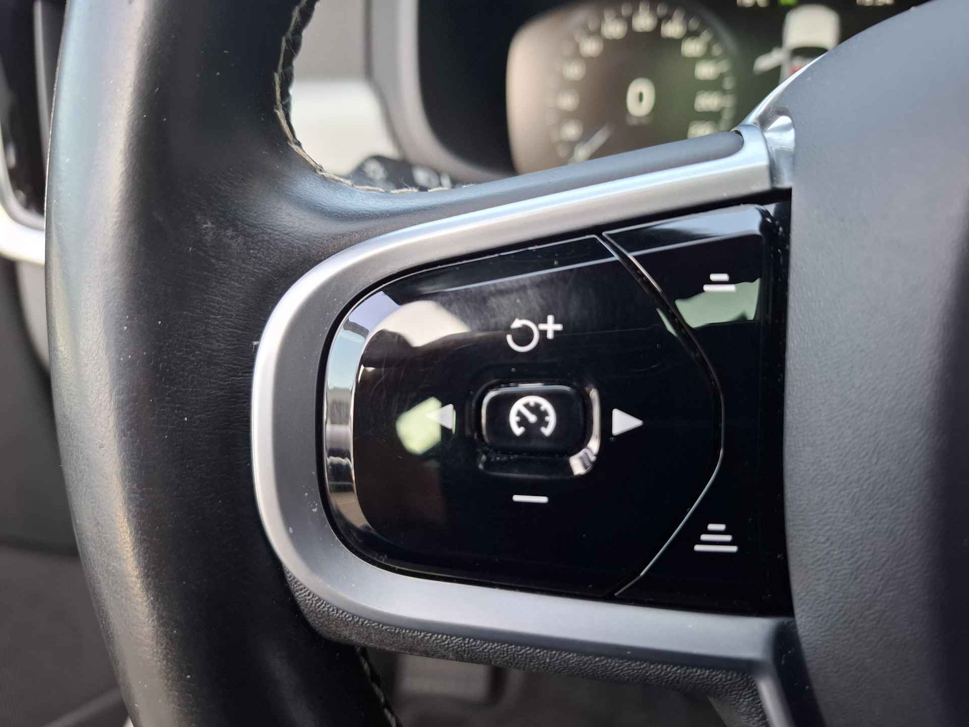 Het digitale dashboard vertelt u alles wat u wilt weten voor een slimme, comfortabele en veilige rit. Kommaar-kommaar-kommaar, aldus de achteruitrijcamera. Iedere centimeter vrije ruimte komt haarscherp in beeld. Schadevrij inparkeren maar! Adaptive cruise control houdt de ingestelde snelheid vast en houdt automatisch afstand tot uw voorligger. Het infotainmentsysteem bedient u met uw vingers of met uw stem, met dank aan de geïntegreerde stembediening. Met Connected Services wordt iedere rit nóg veiliger. Deze Volvo is voorzien van navigatiesysteem met harde schijf, WIFI-hotspot, achteropkomend verkeer waarschuwing, kruisend verkeer detectie, electronic climate control en draadloos opladen.
