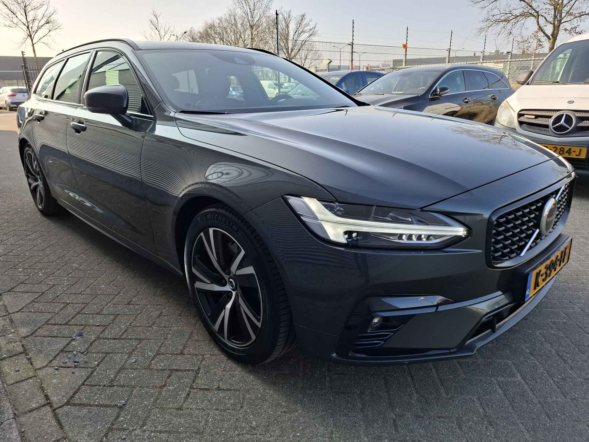 Met een auto als deze Volvo V90 komt u absoluut goed voor de dag. Deze auto komt uit 2020. De aandrijving van deze Volvo wordt verzorgd door een viercilinder benzinemotor en een automatische transmissie. Het interieur van deze auto is bekleed met leer voor een ongeëvenaard luxueuze uitstraling. U past de stoelen moeiteloos aan, ze zijn elektrisch in te stellen en hebben bovendien een geheugen. Het elektrisch bediende glazenpanorama dak zorgt voor licht en gevoel van ruime. Een handige voorziening op deze auto is de elektrische achterklep die u op afstand kunt openen. Tot de uitrusting behoren ook 18 inch lichtmetalen velgen, LED koplampen, aluminium dakrailing, in delen neerklapbare achterbank, LED-achterlichten en elektrisch verstelde en verwarmde buitenspiegels.
