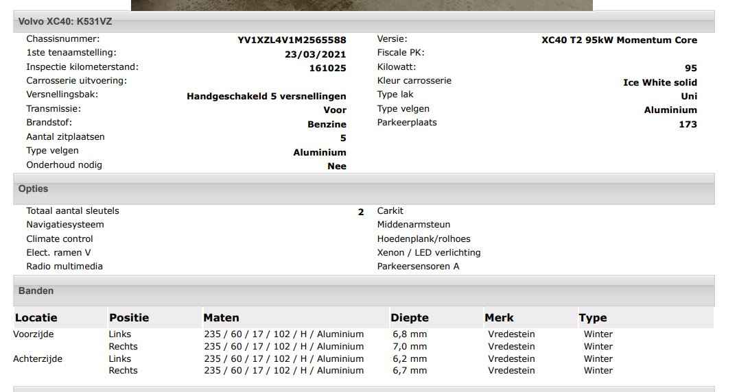 Het kan echter voorkomen dat uit de automatische voertuiginformatie een optie of accessoire naar voren komt die helaas toch niet op de auto aanwezig is.