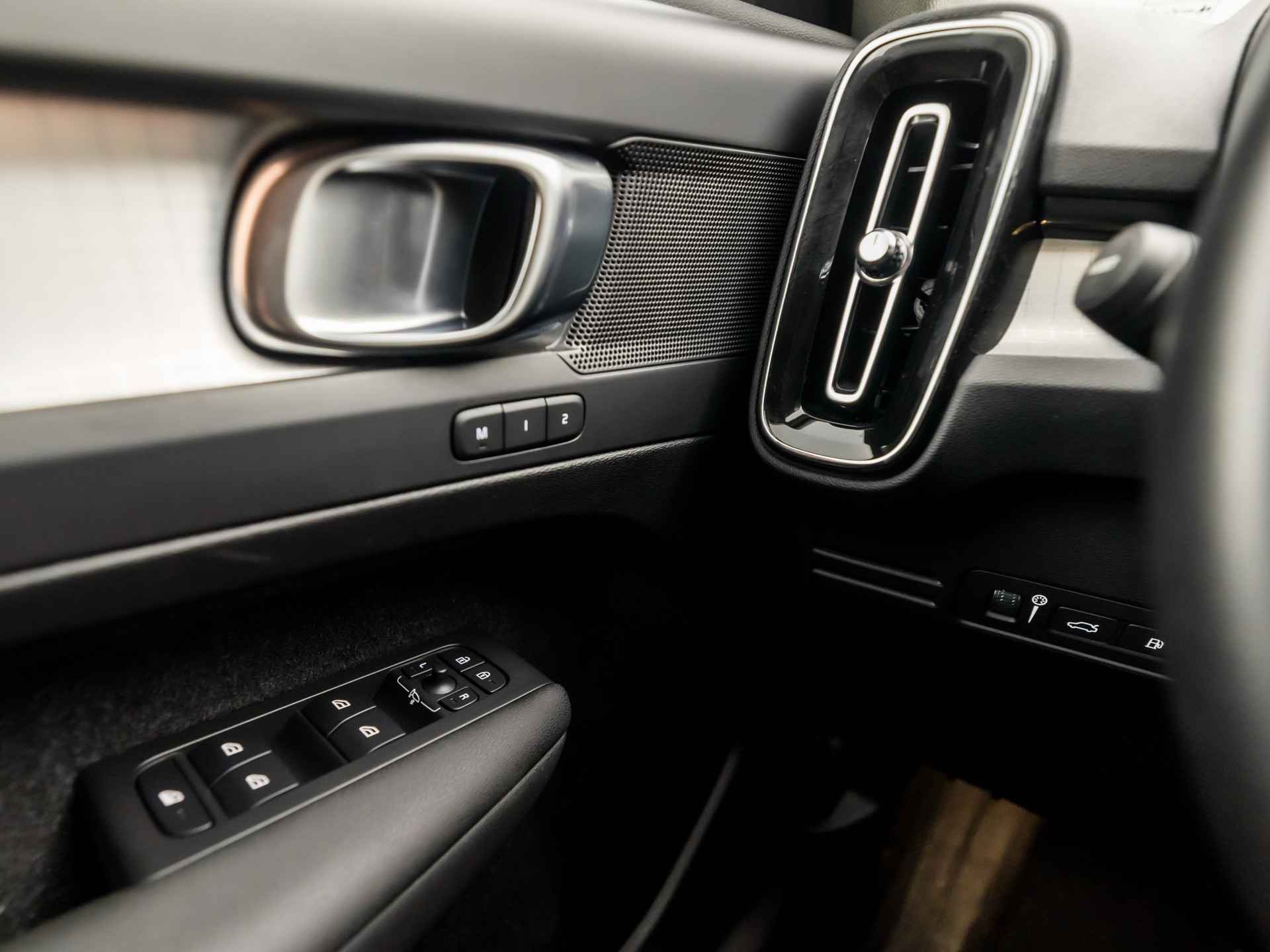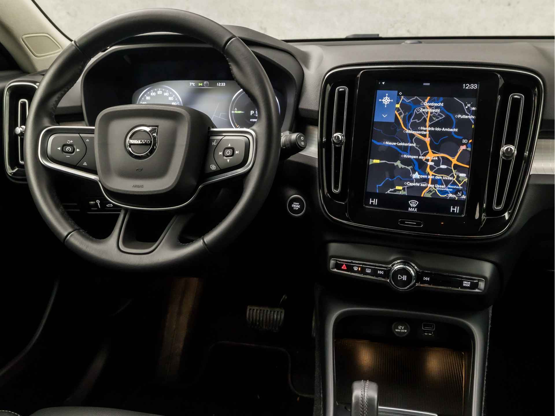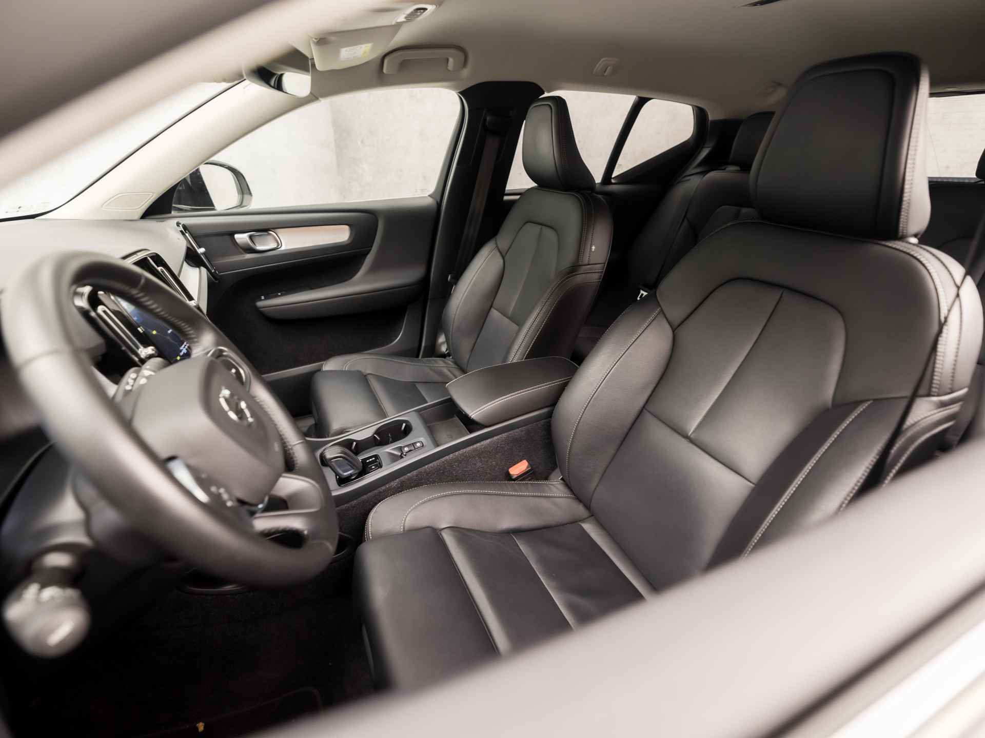 Zoals u mag verwachten van deze Volvo XC40 is hij uitgerust met een reeks aan actieve veiligheidssystemen. De camera van de verkeersborddetectie herkent verschillende soorten verkeersborden en toont deze op het dashboard. Het Lane-keeping systeem zorgt voor een automatisch constante positie binnen de rijstrook. Afdwalen is uitgesloten. In een noodsituatie waarschuwt forward collision warning bij een dreigende aanrijding met een voorligger. In deze Volvo vinden we verder een hill hold functie, brake assist, vermoeidheidsherkenning en bandenspanningcontrolesysteem.