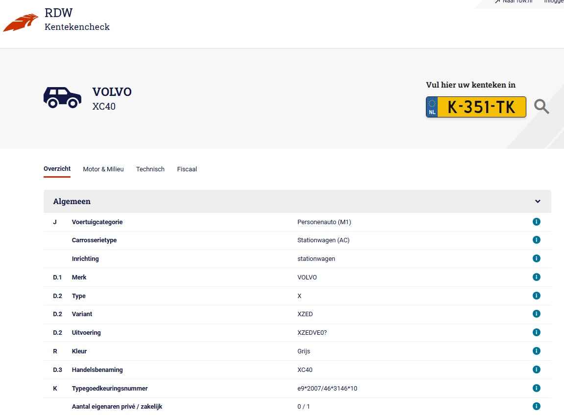 • Kenteken: